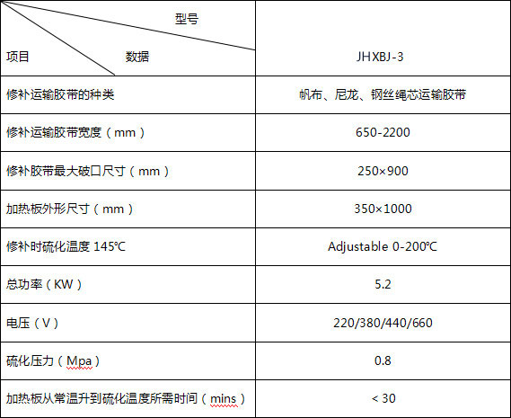 膠帶輸送機(jī)在運(yùn)行過(guò)程中,由于物料中含異物或機(jī)械本身故障,會(huì)發(fā)生較長(zhǎng)距離的沿膠帶縱向的撕裂。利用JHXBJ-3型電熱式膠帶修補(bǔ)器,可迅速有效地修復(fù)膠帶的縱向撕裂,另外本廠可根據(jù)用戶(hù)的需求,生產(chǎn)特殊規(guī)格的修補(bǔ)器械。